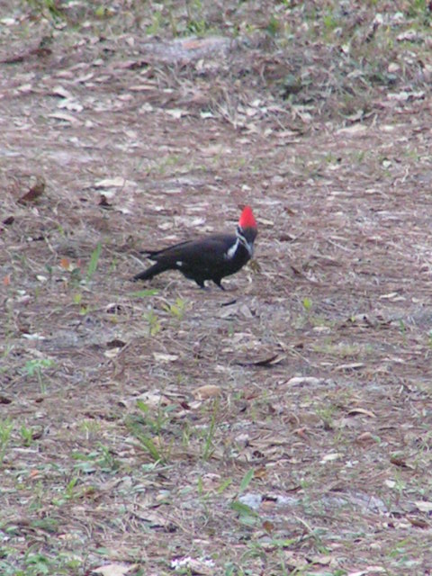 Nearly as large as a crow, the Pileated Woodpecker is the largest woodpecker in most of North America. Its loud ringing calls and huge, rectangular excavations in dead trees announce its presence in forests across the continent. |