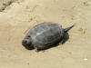 The snapper is our biggest freshwater turtle, up to 35 cm shell length. Recognized it by its size, its muscular limbs and long tail or by the sawtooth back edge of its carapace |